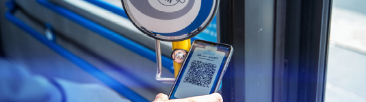 On the bus and tram, you can check in and out with your barcode at the barcode reader under the validator.